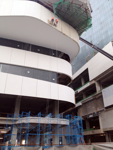 プロンポンのランドマークと言えば駅と直結するエンポリアムデパートだが今現在、2014年末の全面リニューアルオープンに向けて粛々と工事が行われている。この改修工事と同時に、BTSプロンポン駅ではエンポリアムデパートの母体であるモールグループによるメガプロジェクト「The District EM」が進行中だ。
